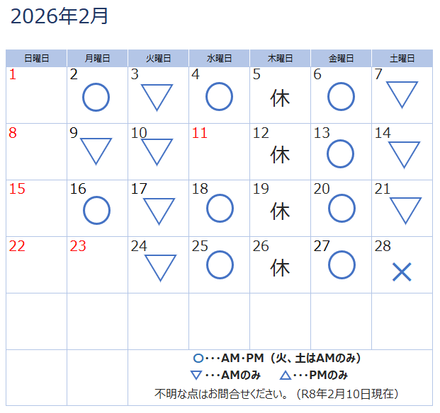 2月の視能訓練士在勤日