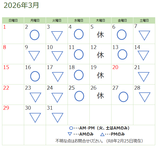 3月の視能訓練士在勤日
