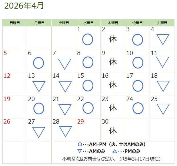4月の視能訓練士在勤日